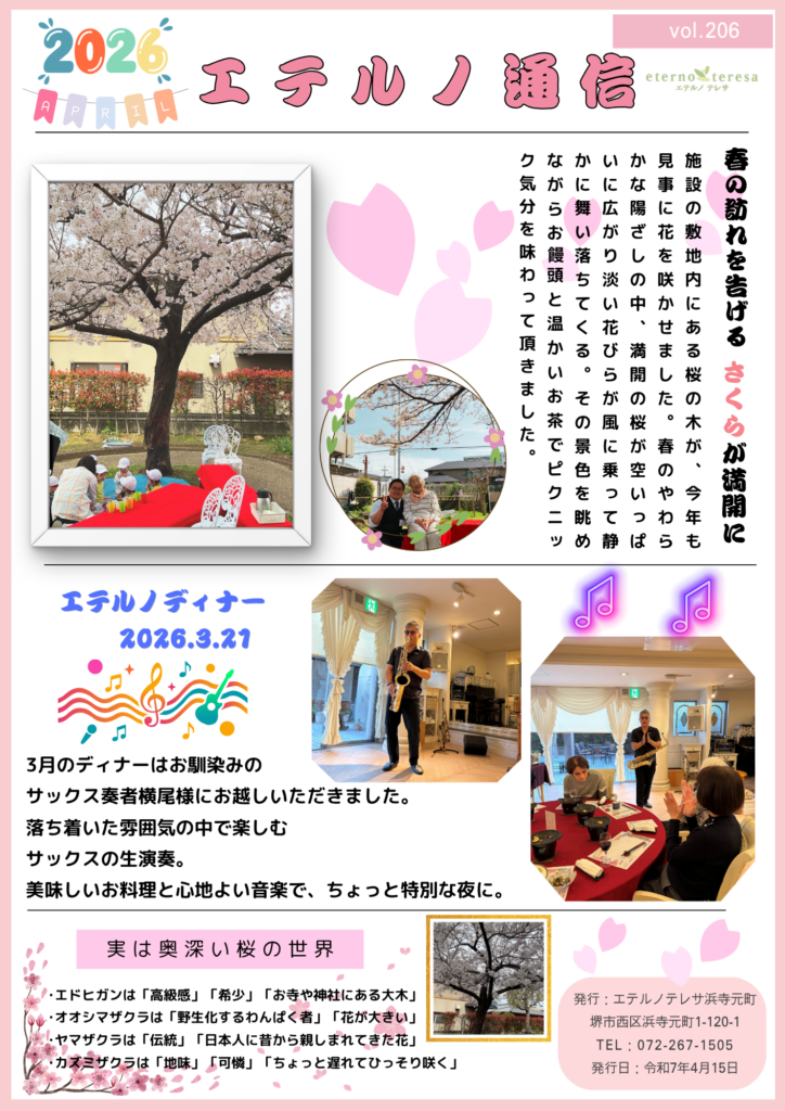 エテルノテレサ浜寺元町では、ご入居者様に四季の移ろいを感じながら、心豊かな毎日をお過ごしいただけるよう、季節に寄り添ったイベントを大切にしています。